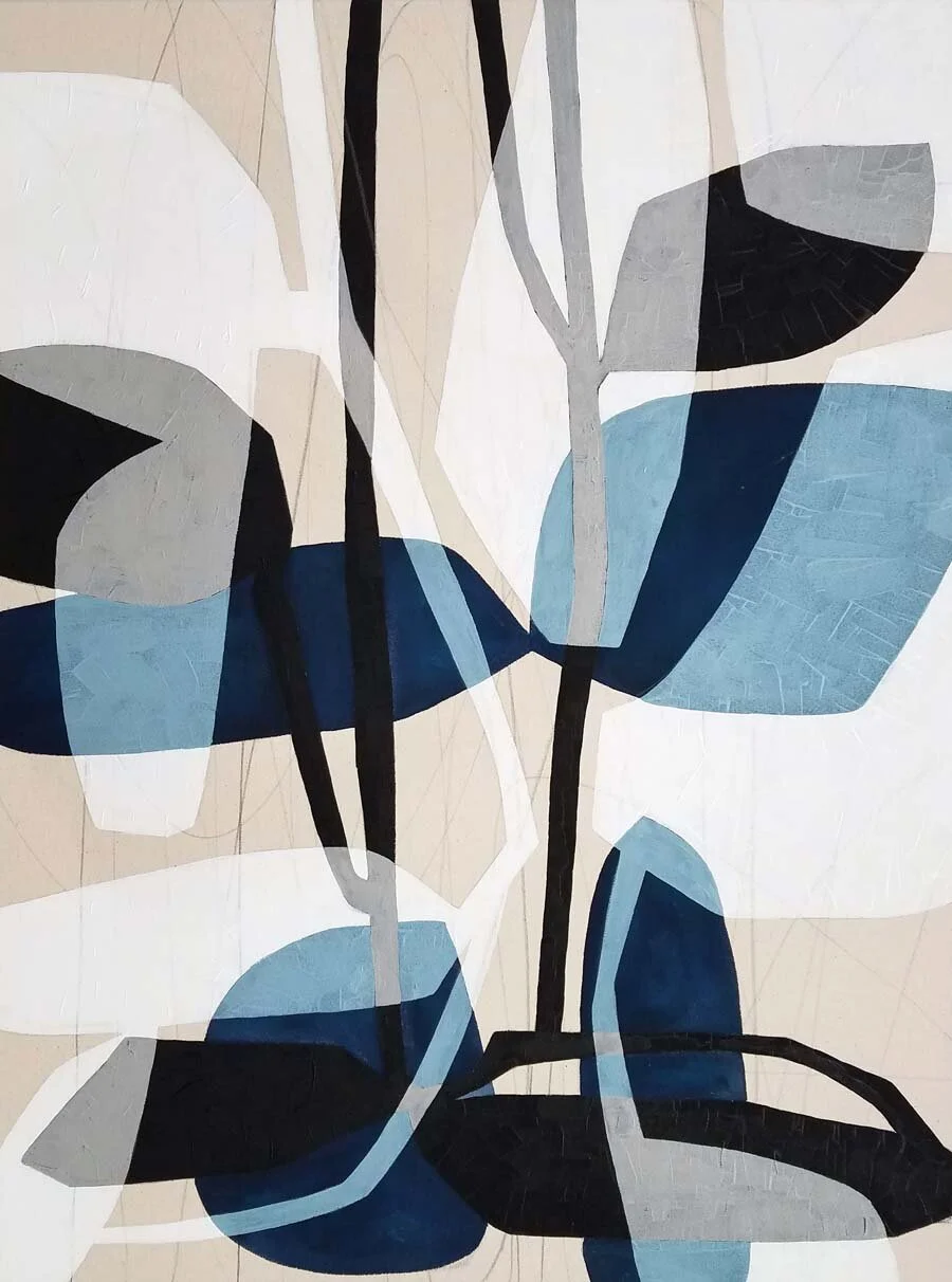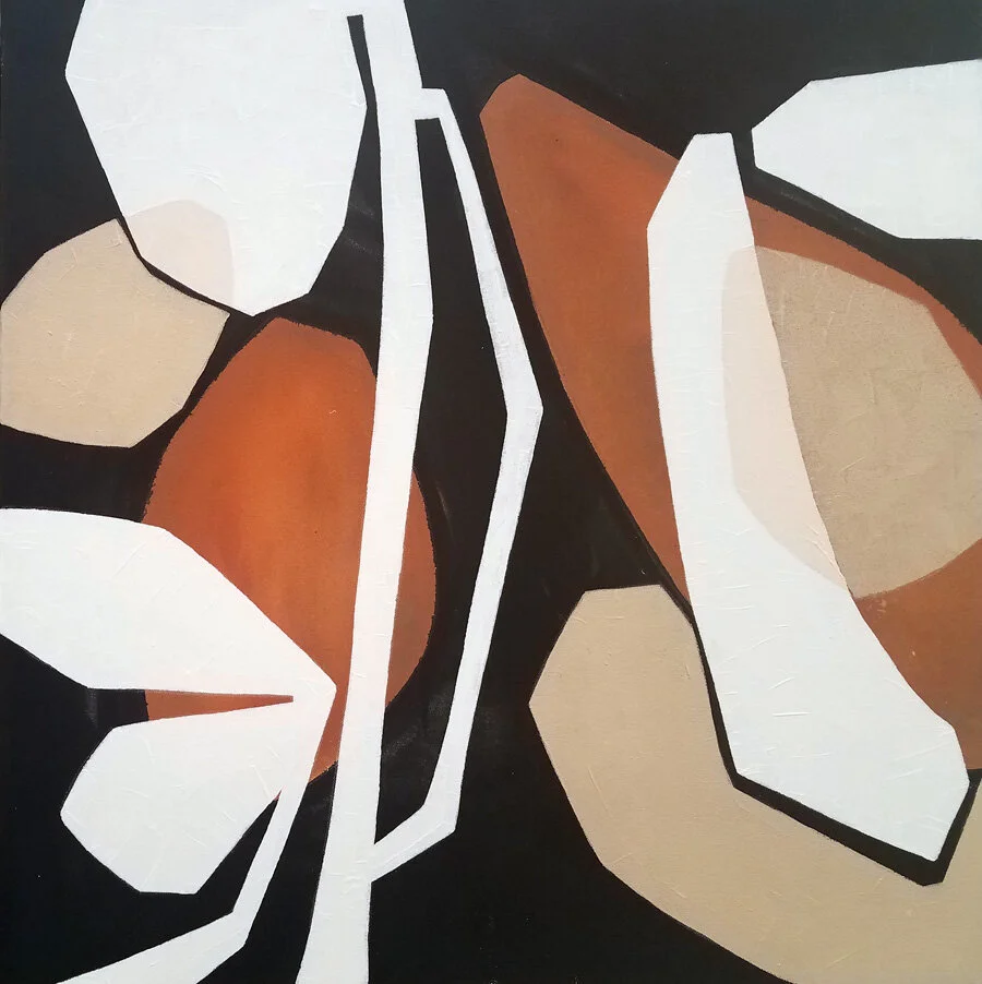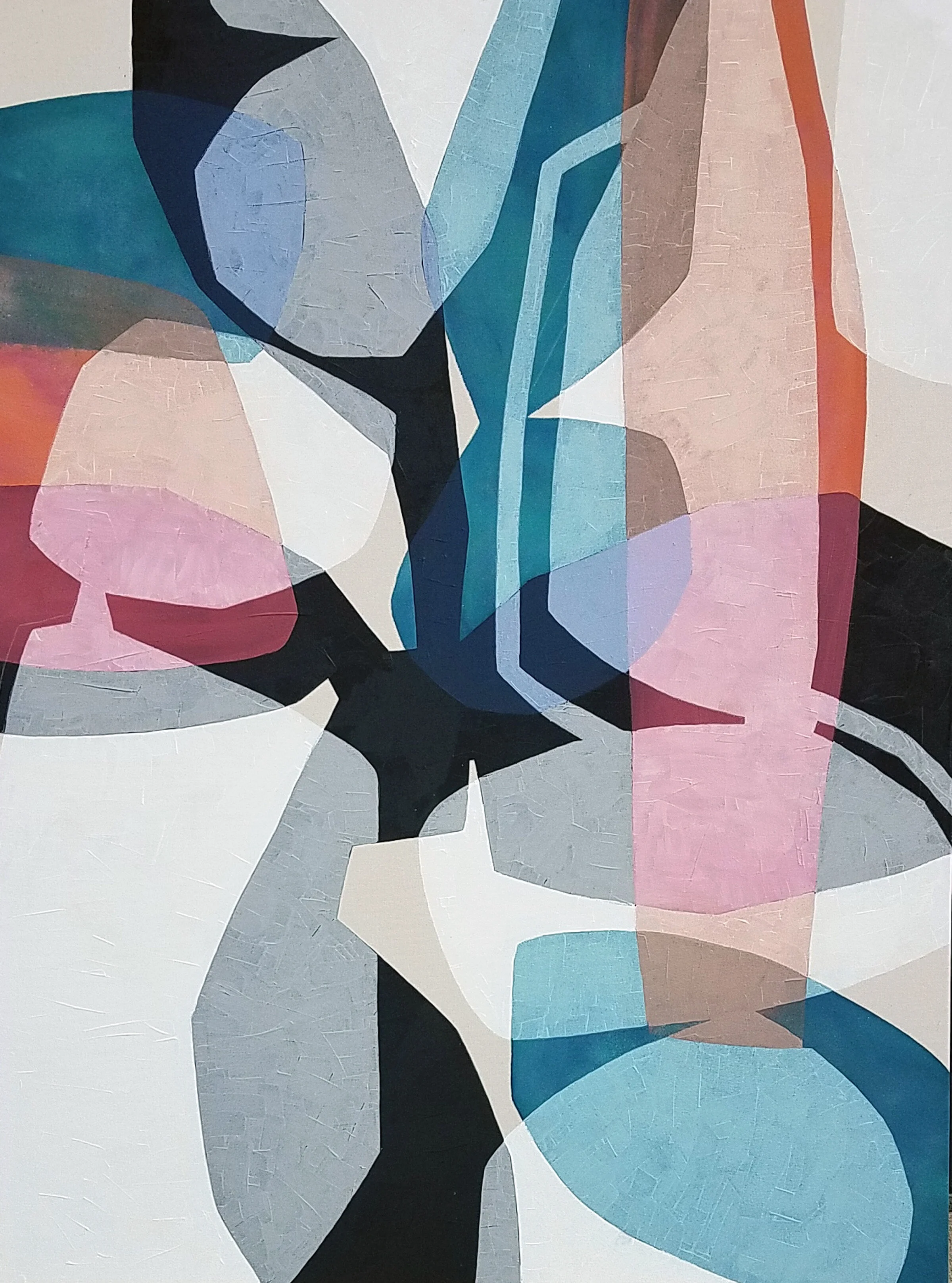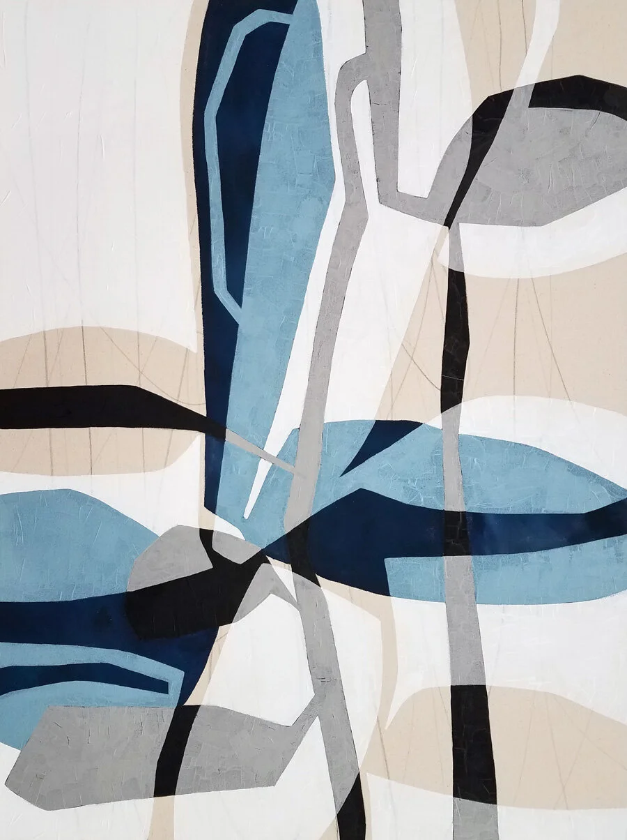 Wendy approaches painting with a sense of adventure. Each canvas is an opportunity to explore relationships through shape and color. She finds herself pondering how much territory a specific shape will occupy, whether it should expand or overlap a neighboring shape... will the forms meet in a strong defined way or will the edges barely touch in delicate softness? The use of color opens yet another avenue for interplay of relationship. A bold orange painted next to a companion bold red will look and feel completely different if paired next to a muted yellow. This dialogue of shape and color is one Westlake cannot resist.